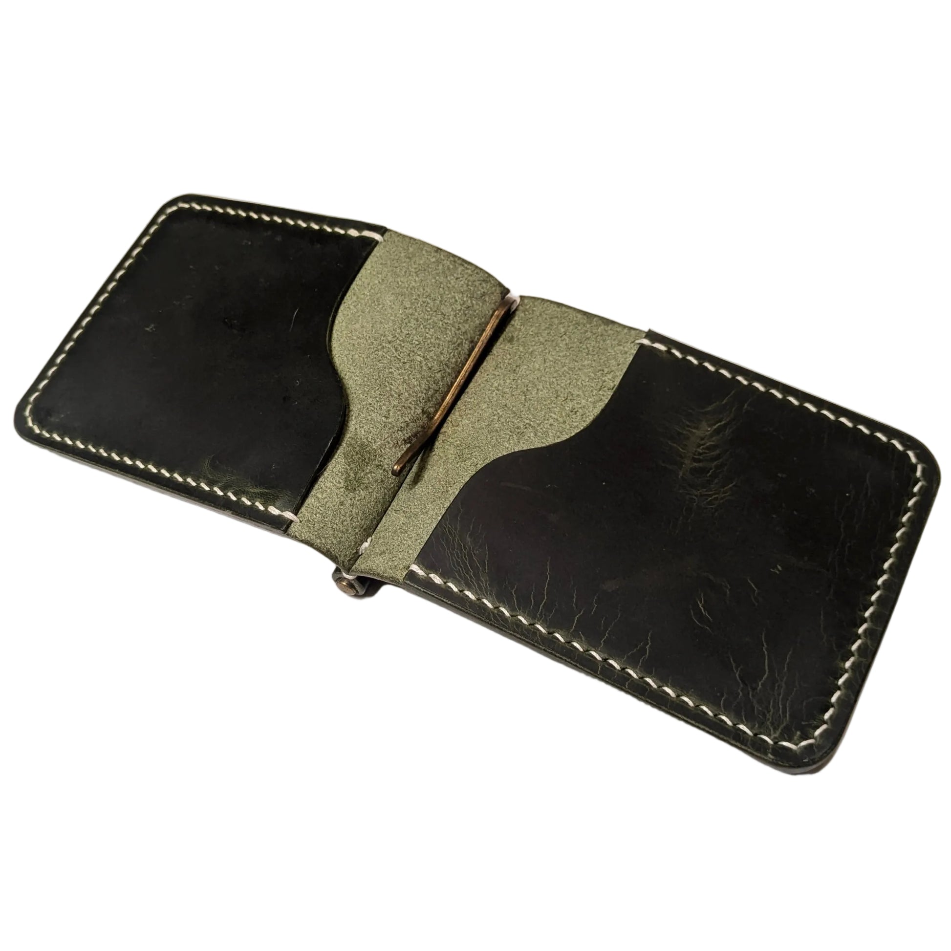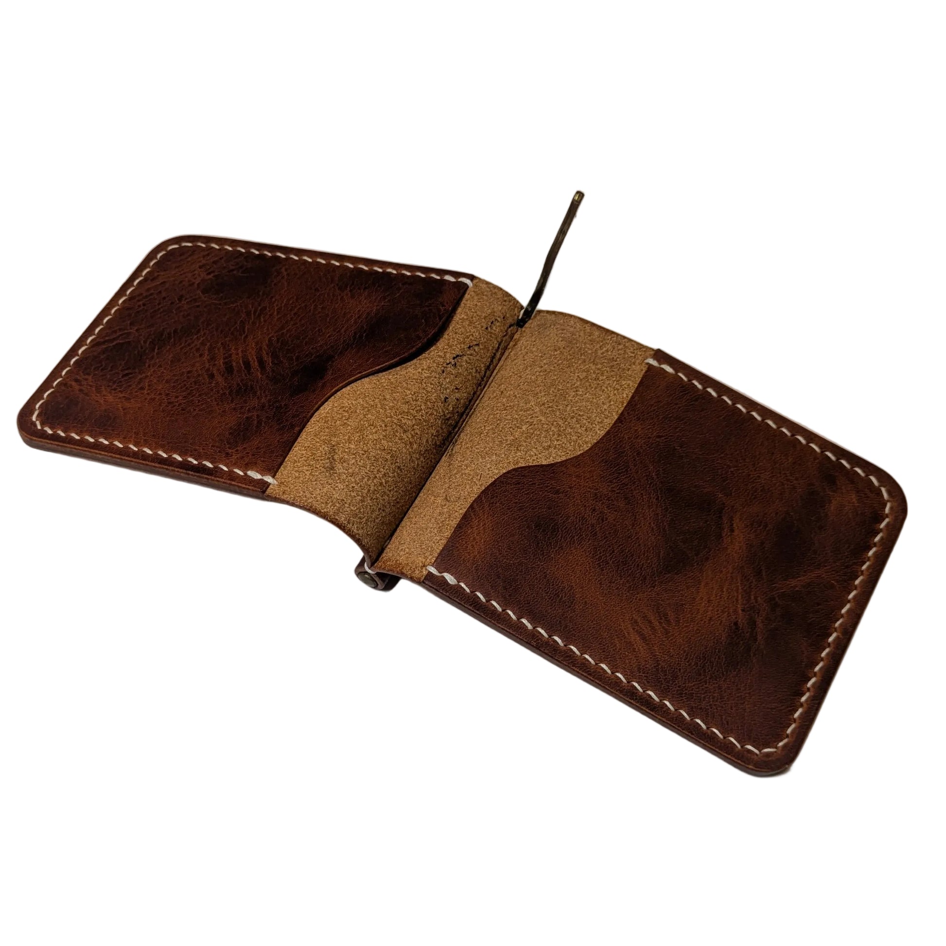 A 4-pocket wallet with a spring-loaded money clip.